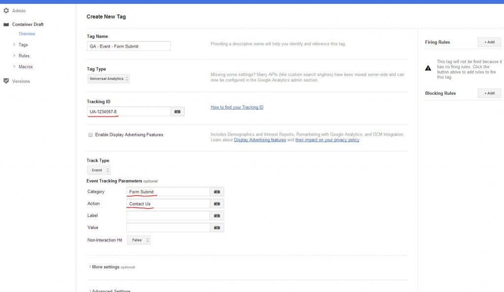 After setting up a Google Tag Manager account: www.google.com/tagmanager/ follow these steps…